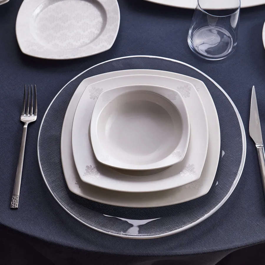 - Complete 60-piece set designed for 12 diners