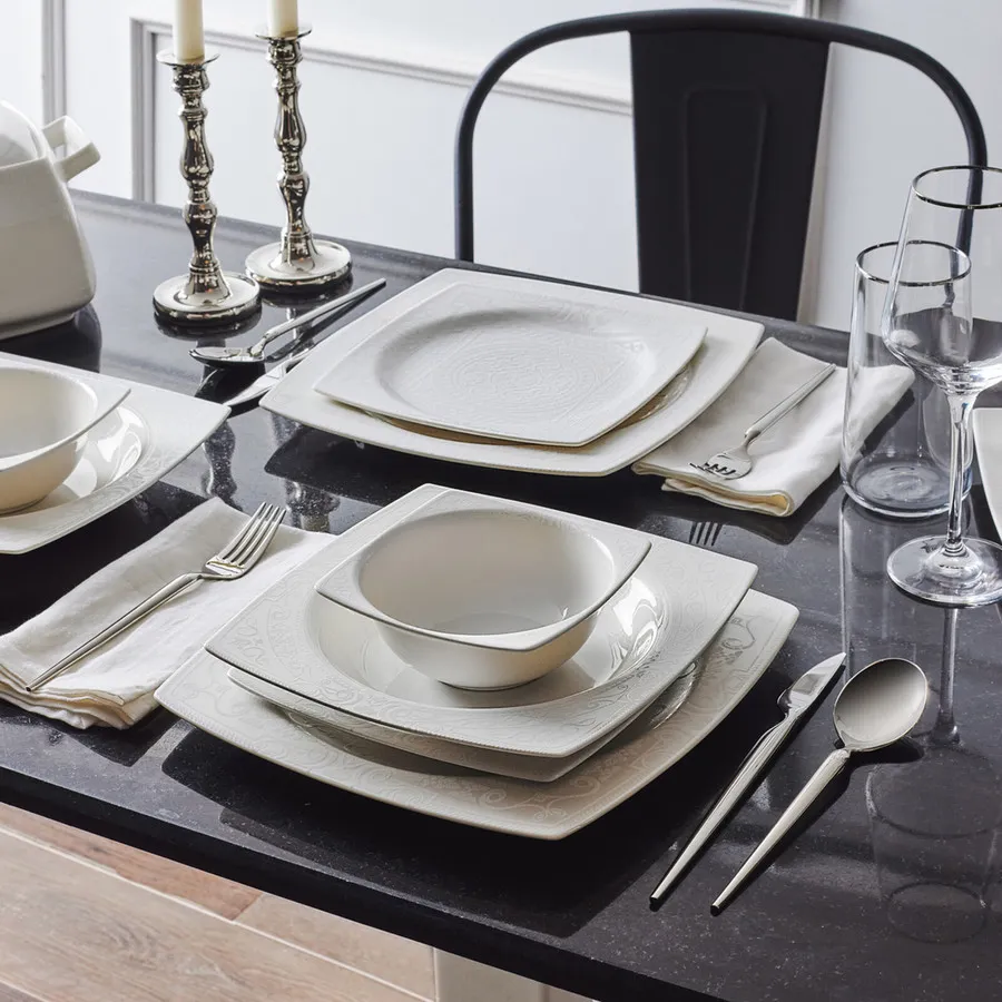 • Includes dinner plates, dessert plates, and bowls for versatile use