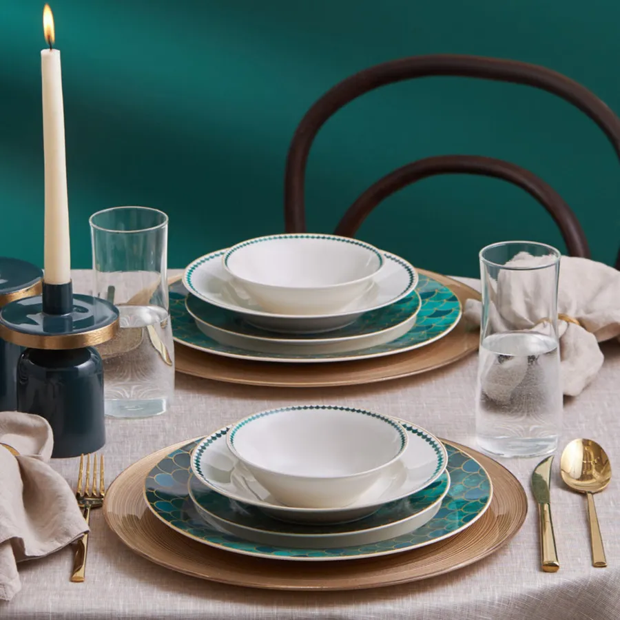Elevate your dining experience with the Karaca Zümrüt 24-Piece Porcelain Dinner Set, perfect for 6 people. Adorned in elegant green and white, this set combines style and functionality at an unbeatable price of £69.95.