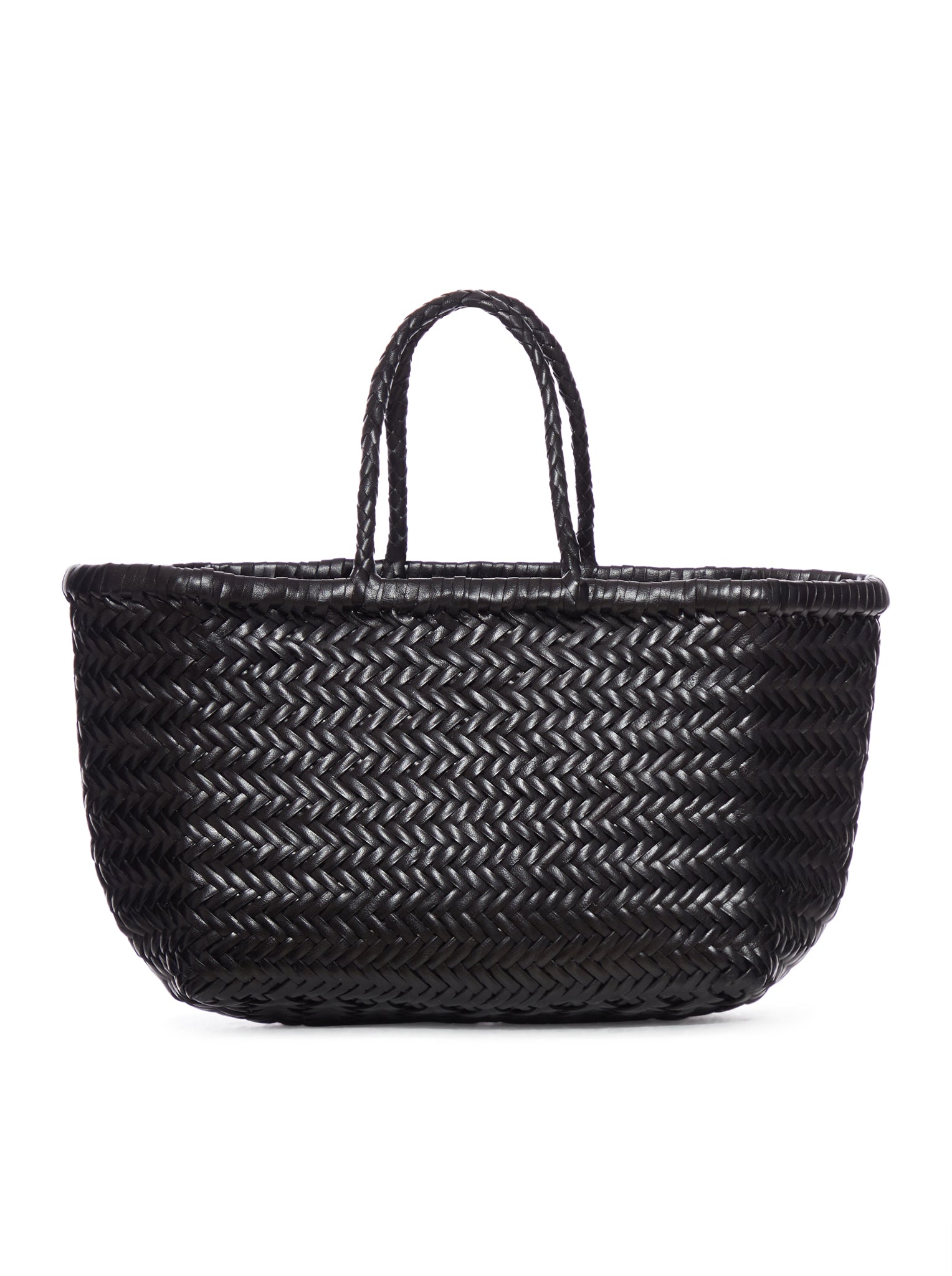 -Handwoven bag -Buffalo calfskin -Unlined -Top width: 45 cm -Bottom width: 33 cm -Length: 24 cm -Handle length: 17 cm